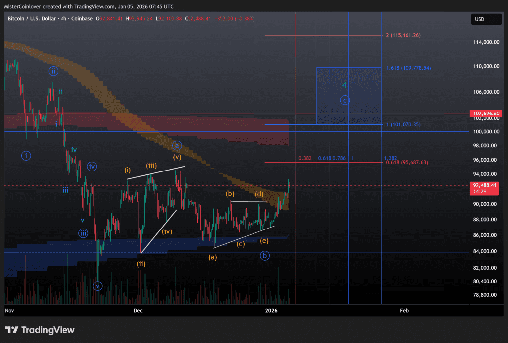 Entsprechend könnte dieses ZigZag bereits die Invalidierung der Welle 4 auslösen. Seine Mindestkurszielerwartung liegt bei knapp 95.690 $.