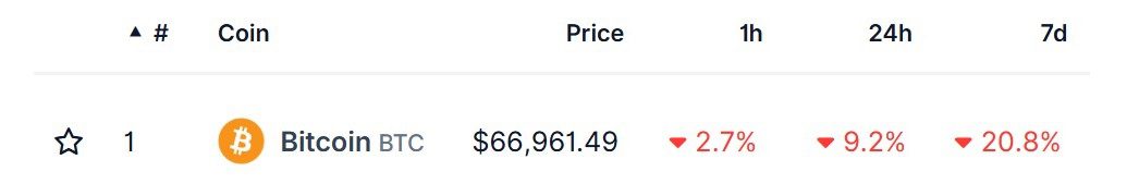 - Der aktuelle Bitcoin Kurs notiert bei rund 67.000 $, nachdem er in den vergangenen Tagen deutlich gefallen ist.
