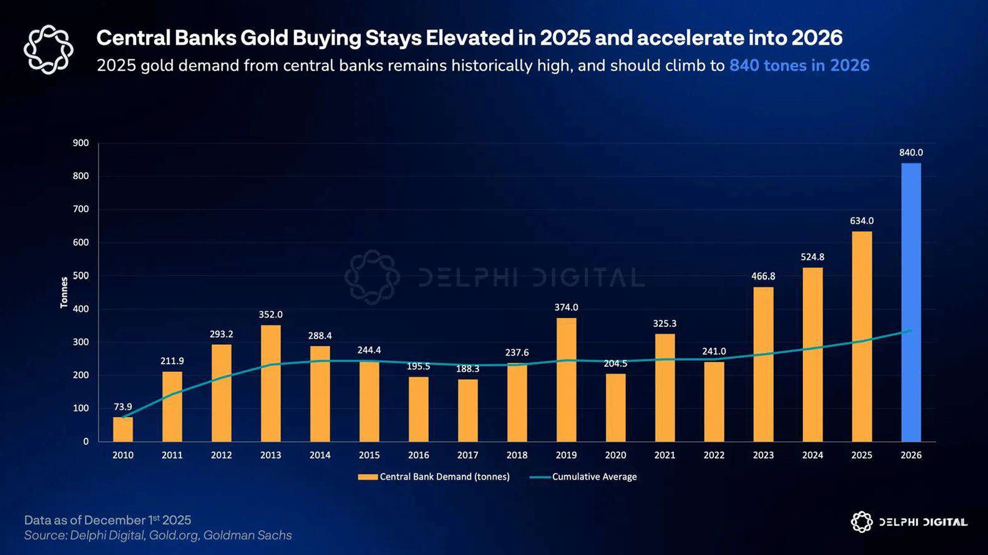 Zentralbanken haben im Jahr 2025 mehr als 600 Tonnen Gold gekauft – und dieser Trend dürfte sich laut Prognosen auch 2026 fortsetzen. So erwartet Goldman Sachs, dass die Zentralbankkäufe im Schnitt bei rund 70 Tonnen pro Monat liegen werden. Hochgerechnet wären das etwa 840 Tonnen bis zur zweiten Jahreshälfte 2026.