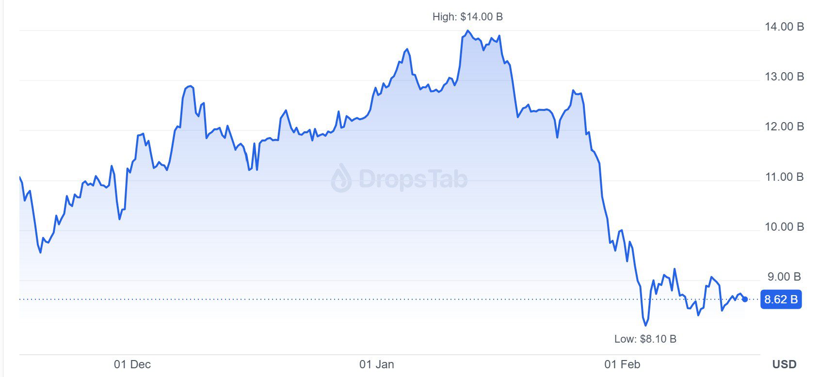 BitMine sitzt laut den Daten von DropsTab aktuell auf nicht realisierten Verlusten in Höhe von knapp 7,95 Mrd. $. Dennoch hat das Unternehmen in den vergangenen Wochen wiederholt weitere ETH gekauft.