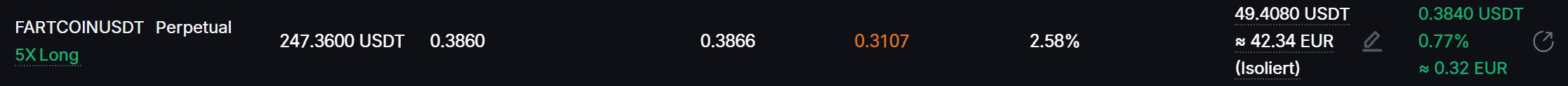Ich werde später noch Artikel zu meinem Risiko-Management und mehr veröffentlichen. Doch jetzt heißt es erst einmal, in Aktion zu treten Genau das werde ich hier und jetzt tun, indem ich erläutere, warum ich FARTCOIN handeln werde, wie viel meines Portfolios ich dafür einsetzen werde und wie ich diesen Trade im Detail aufbauen werde.