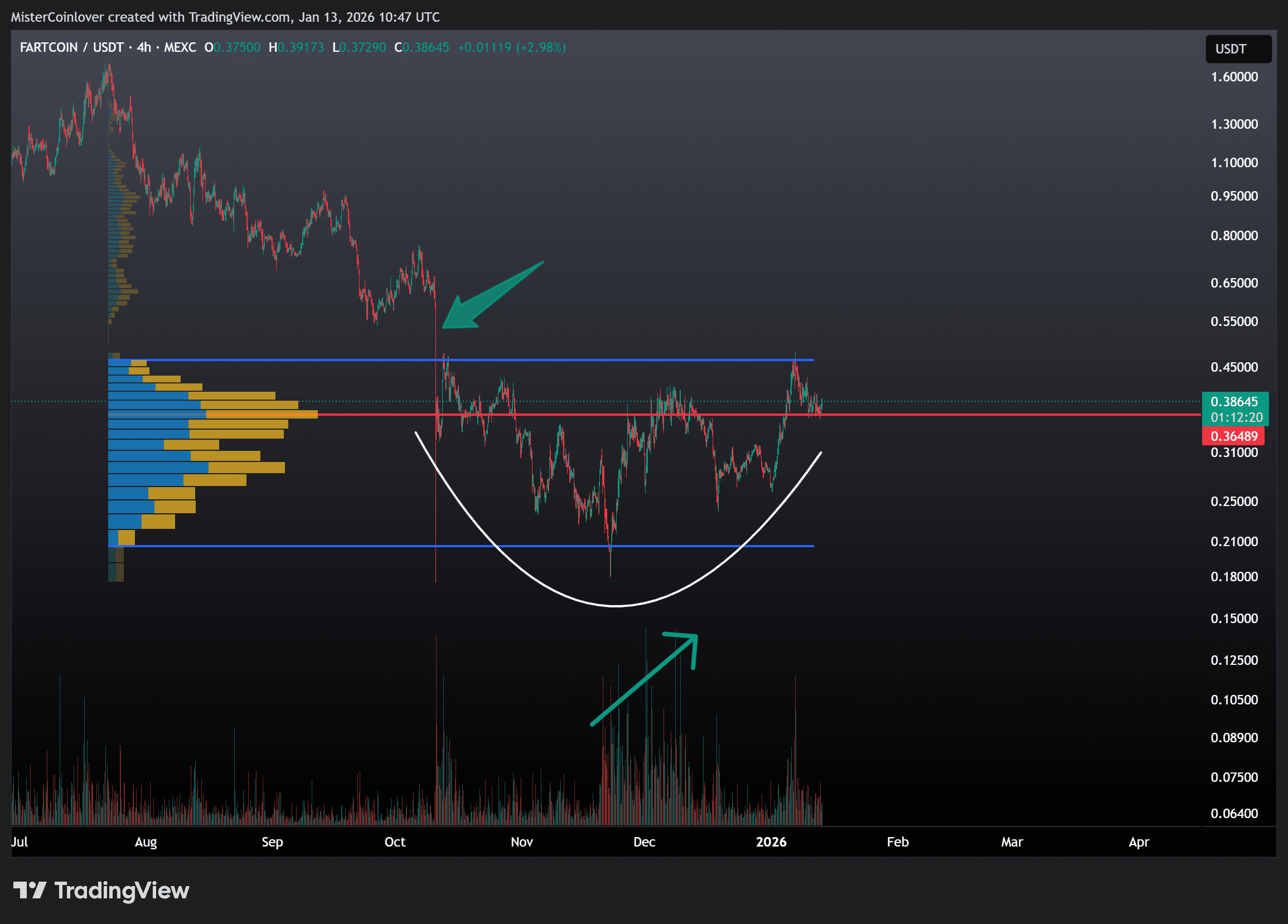 Was die aktuelle Struktur beim Fartcoin Kurs für mich aber interessant macht, ist ihr Aufbau. Indem wir einen Blick auf den folgenden FARTCOIN/USD-Chart werfen, kann ich erklären, was ich damit meine.