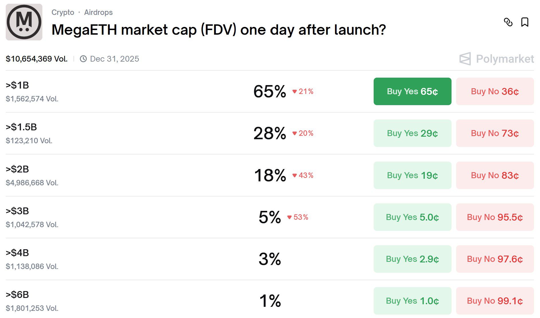 Wahrscheinlichkeitsverteilung der FDV von MegaETH nach dem Mainnet-Start. Bildquelle: polymarket
