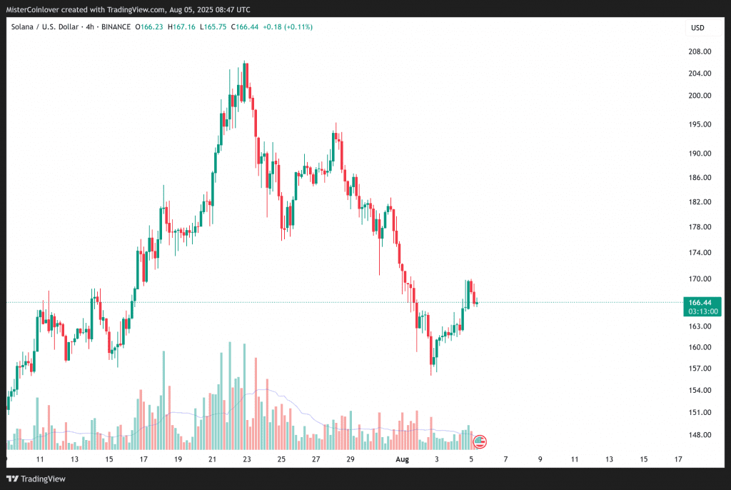 Trotz der positiven Entwicklungen war der Solana Kurs zuletzt stark unter Druck. Rund 24 % brach er innerhalb von nur zehn Tagen ein. Erst seit dieser Woche scheint er sich etwas zu erholen und handelt derzeit bei einem Preis von etwa 166 US-Dollar.